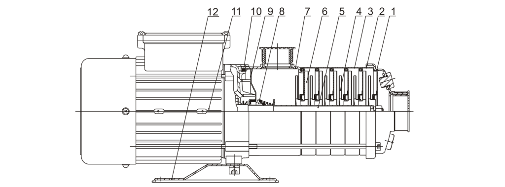 Насос Wellmix CUC 8-25T BQCE (3х380В 1.5 кВт) (11019970) является нормальновсасывающим многоступенчатым центробежным насосом, с осевым всасывающим и радиальным напорным патрубками.Насосы CUC состоят из двух основных частей: электродвигатель и насосный агрегат. Промежуточные камеры соединены между собой, а также с основанием и головной частью насоса при помощи стяжных болтов.