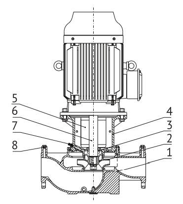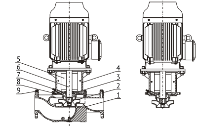 Насосы оснащены асинхронным электродвигателем с воздушным охлаждением. Конструкция насоса позволяет снять головную часть насоса (двигатель, фонарь и рабочее колесо) для технического или сервисного обслуживания без полного демонтажа насоса с трубопровода.