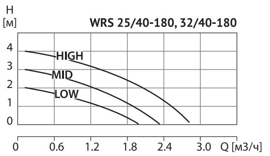 - Для выбора оптимального режима работы, насос имеет три скорости, изменяемые ручным переключателем
